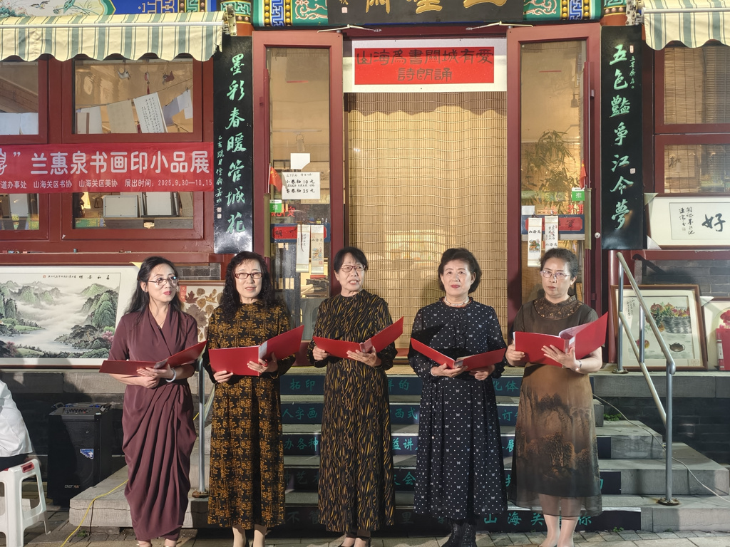 9月26日,山海关新华书店联合古城街道服远社区、山海关诗词朗诵协会、生命重建读书会五墨斋举办“致敬祖国,山海同庆”国庆主题诗歌朗诵会。朗诵爱好者们齐聚一堂,现场朗诵《青春中国》《长津湖的冰雕》《月光下的中国》《祖国你就是我要唱的那首歌》《中国诵》等15首脍炙人口的诗篇,歌颂可爱的祖国,以诗朗诵的形式为祖国庆生。