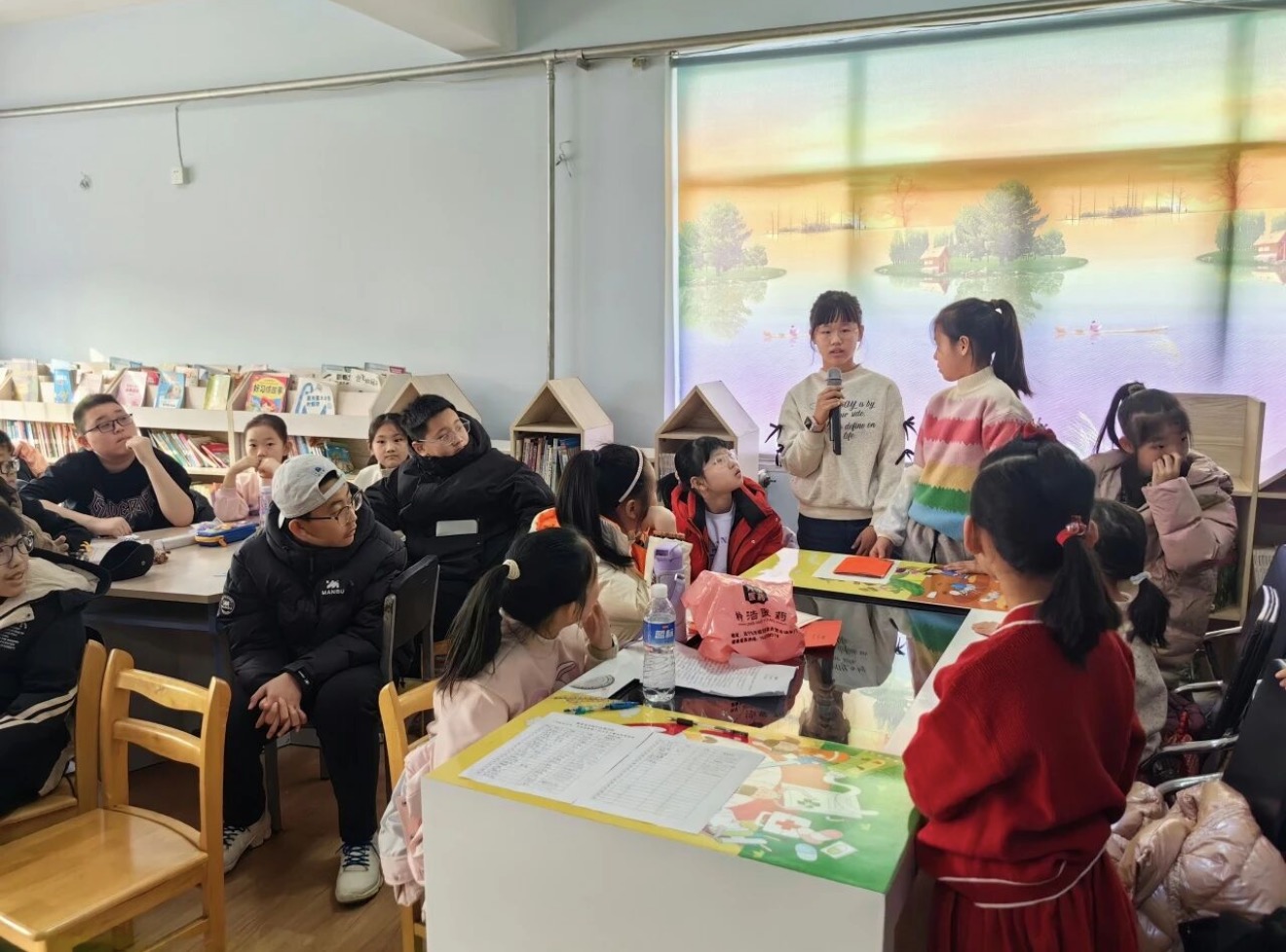 手工环节结束后,活动进入第二部分——“图书馆里过大年•马上读书”假期读书感悟分享会。小朋友们围坐在一起,踊跃分享自己在寒假期间读到的好书和心得体会。有的小朋友分享了《小王子》中关于爱与责任的真谛;有的讲述了《西游记》里精彩纷呈的故事情节,表达了对孙悟空勇敢机智的敬佩;还有小朋友推荐了科普绘本《揭秘太空》,带领大家遨游宇宙,探索未知。孩子们的发言真诚而生动,不时引发大家的共鸣和掌声。这不仅是一次阅读心得的交流,更是一次思想的碰撞和心灵的沟通,展现了新时代少年儿童热爱阅读、善于思考、乐于分享的良好精神风貌。